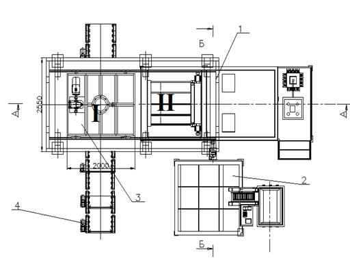 Контакт командоаппарата подаёт сигнал на электромагнитный пускатель, который включает привод секции рольганга 4 , которая подаёт платформу с отливкой на позицию I. Когда платформа будет перед камерой на позиции I, срабатывает выключатель и секция рольганга останавливается.