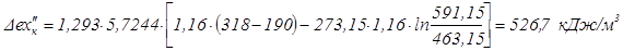 4.15 Потери эксергии за счёт теплообмена в котле-утилизаторе, кДж/м3
