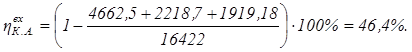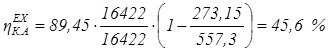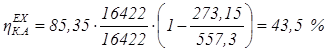 = 43,5%. Эксергетический КПД котельного агрегата с котлом-утилизатором пех