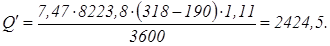Теплота переданная продуктами сгорания испаряемой воде в котле-утилизаторе, кВт: