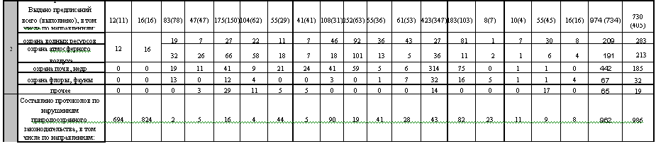 Таблица 4. Сводный отчет о контрольно-инспекторской деятельности Министерства природных ресурсов и экологического контроля за 2010 год в разрезе Управлений экологического контроля