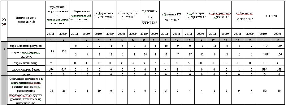 Таблица 1.Экологическая ситуация в ПМР за 2010 год в сравнении с 2009 годом в разрезе административных территорий