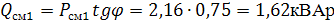 Находим среднесменные реактивные мощности электроприёмников по формуле , где - табличное значение коэффициента реактивной мощности.