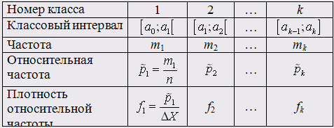 Как уже отмечалось выше, для непрерывной случайной величины всю область ее возможных значений нужно разделить на интервалы, которые называют классами. Обычно ширины всех классов выбирают одинаковыми. Ширину интервалов ΔX определяют формулой