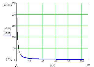 Т.к. по условию время обнаружения радиоактивности является временем начала спада дозы и временем начала облучения, то в результате этого к 96 часам прибавляем еще 7 часов и в итоге рассчитываем и строим график до 103 часов. Отсюда получаем конечную формулу, по которой производим расчет: