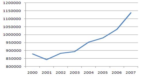 Рис. 3.3.4. Динамика численности малых предприятий в России в 2000–2007 гг.