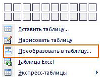Преобразование готового текста документа в таблицу