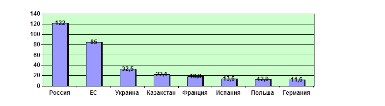Рис. 1. Производство топливного биоэтанола в странах ЕС, млн. литров