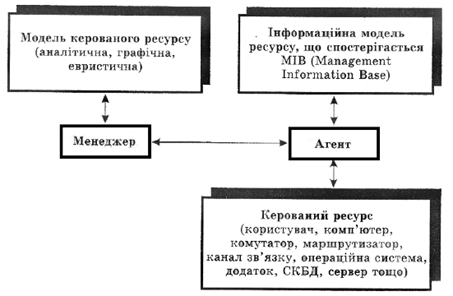 Рисунок 2.1 – Принцип взаємодії агента, менеджера і керованого ресурсу