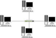 Топологія «Зірка» передбачає підключення кожного комп'ютера окремим проводом до окремого порту пристрою, званого концентратором або повторювачем, або хабом (див. рис. 2.2).