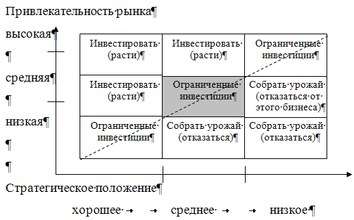 Рис. 7. Оценка стратегии фирмы с помощью портфельной модели «Мак‑Кинси»