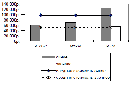 5. Определить соотношение цен на услуги по различным формам обучения в конкурентной среде РГУТиС, сравнить данное соотношение с соотношением, характерным для РГУТиС.