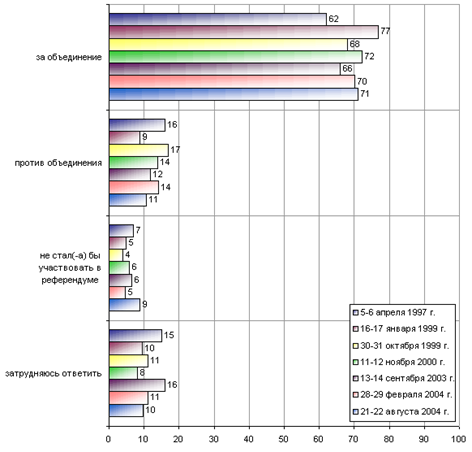 Если бы сегодня проводился референдум по вопросу объединения Белоруссии и России, то Вы лично проголосовали бы за объединение или против объединения?