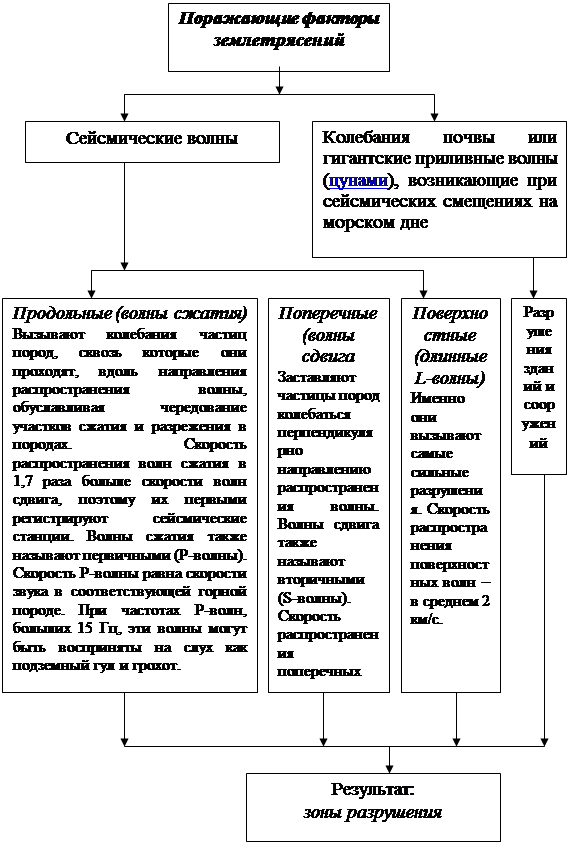 б) опасные и вредные факторы землетрясений (поражающие факторы) [17,