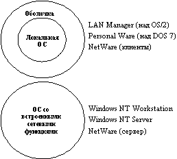 Первые сетевые ОС представляли собой совокупность существующей локальной ОС и надстроенной над ней сетевой оболочки