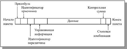 Стоповая комбинация служит для информирования аппаратуры принимающего абонента об окончании пакета, обеспечивает выход аппаратуры приемника из состояния приема. Это поле может отсутствовать, если используется самосинхронизирующийся код, позволяющий определять момент окончания передачи пакета.