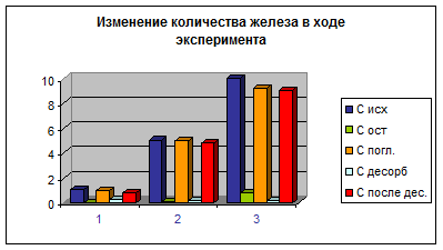 Рис. 2 Изменение количества железа в ходе эксперимента
