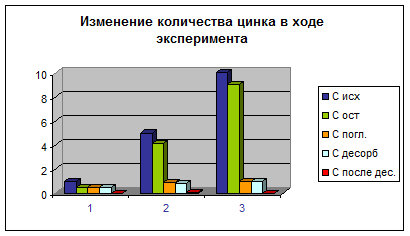 Рис. 3 Изменение количества цинка в ходе эксперимента