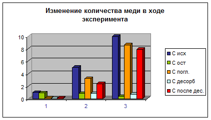 Рис. 4 Изменение количества меди в ходе эксперимента