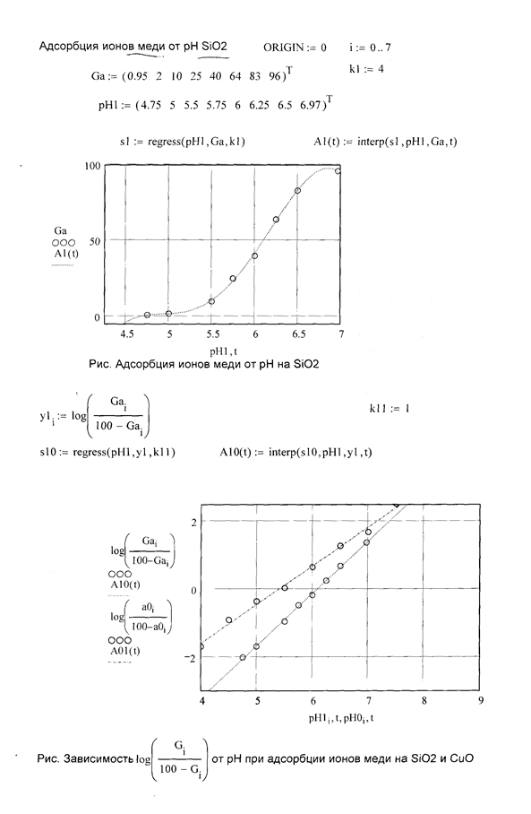 Для природного образца диоксида кремния, ничем не обработанного, такое значение pH равно четырем. Более кислая природа у песка, обработанного раствором, содержащим ионы железа (pH0 = 1,95). У образцов, обработанных растворами, содержащими ионы цинка и меди, слабо-щелочные и нейтральные свойства (pH0 = 7,48 и pH0 = 6,78 соответственно). Эти данные подтверждают ряд адсорбции ионов тяжелых металлов, полученный в адсорбционных исследованиях.