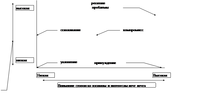 Нижче приводиться малюнок, що ілюструє вживання різних стилів дозволу конфлікту.