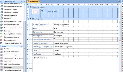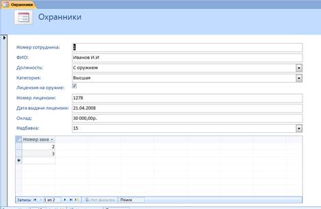 Тема: «Разработка информационной системы «Охранная фирма» средствами СУБД Access»