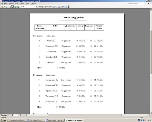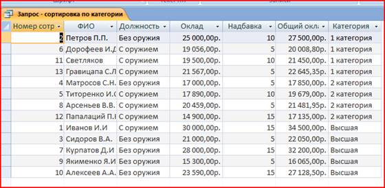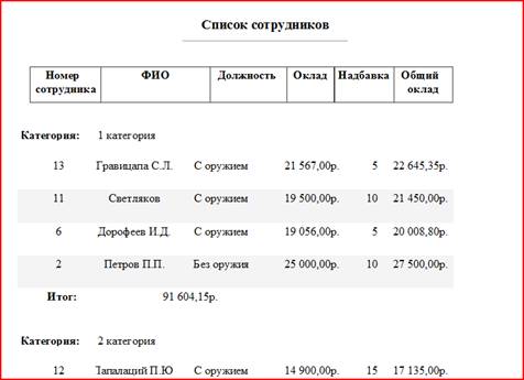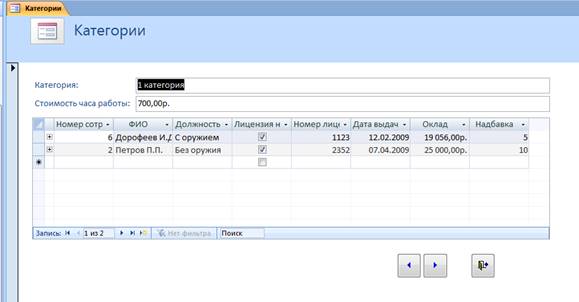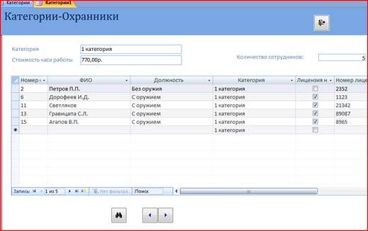 Приложение содержит три модуля, которые реализуют специальные алгоритмы обработки данных. Требуется написать процедуру поиска данных по категории в таблице Охранники.