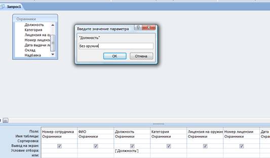 'сравнение введенного текста с полем из записи таблицы Охранники