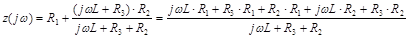 Знайдемо характеристичне рівняння шляхом запису опору у символічній формі з подальшою заміною у ньому на та прирівнюванні цього опору до нуля. Запишемо опір відносно затисків джерела: