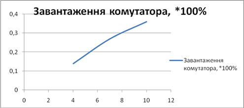 Рис. 78. Залежність завантаженості комутатора КРГ1 від кількості абонентів