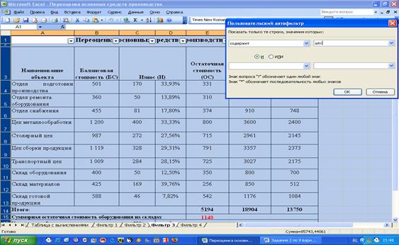 Создать таблицу «Переоценка основных средств производства»,