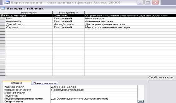 Окно структуры таблицы «Авторы» в режиме «Конструктор»: