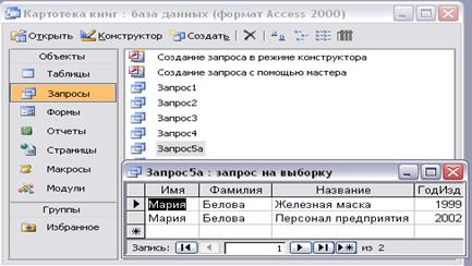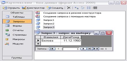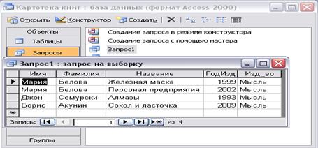 Копия окна таблицы с результатом запроса: