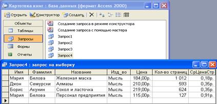 4) в режиме конструктора запроса добавим выражение СрЦенаСтр чтобы вычислить среднюю стоимость одной страницы каждой книги, выпущенной издательством «Мысль». Устанавливаем денежный формат данного выражения.