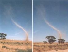 СМЕРЧИ в штате Аризона. Возникновение небольших смерчей в ясную погоду при отсутствии облаков над перегретой поверхностью пустыни.