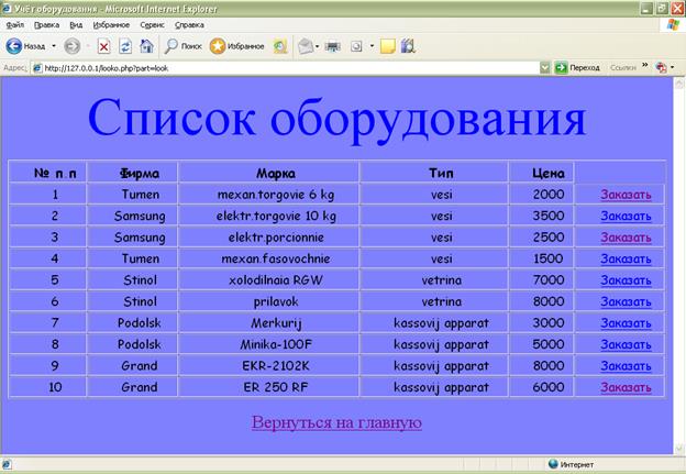 Разработка Web-приложения «Учёт оборудования» с использованием PHP и СУБД MySQL»