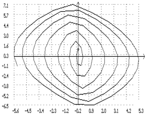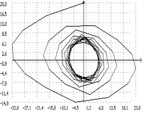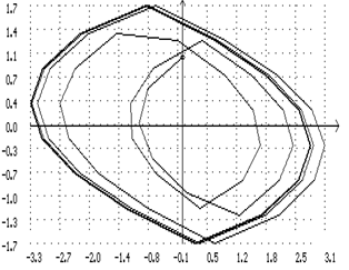 Фазовая траектория для схемы с двухпозиционным реле с зоной нечувствительности представлена на рисунках 4, 5.