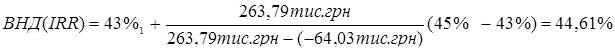 Таблиця Б.2 – Варіаційний пошук ВНД підвищенням ставки дисконтування до 43%