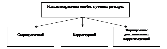 В учетной практике используются следующие методы исправления ошибок в учетных регистрах: сторнировочный, корректурный и формирование дополнительных корреспонденций.