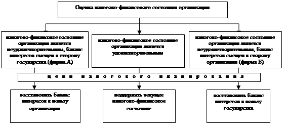 Рис.2. Зависимость целей налогового планирования от результатов оценки налогово-финансового состояния организации.