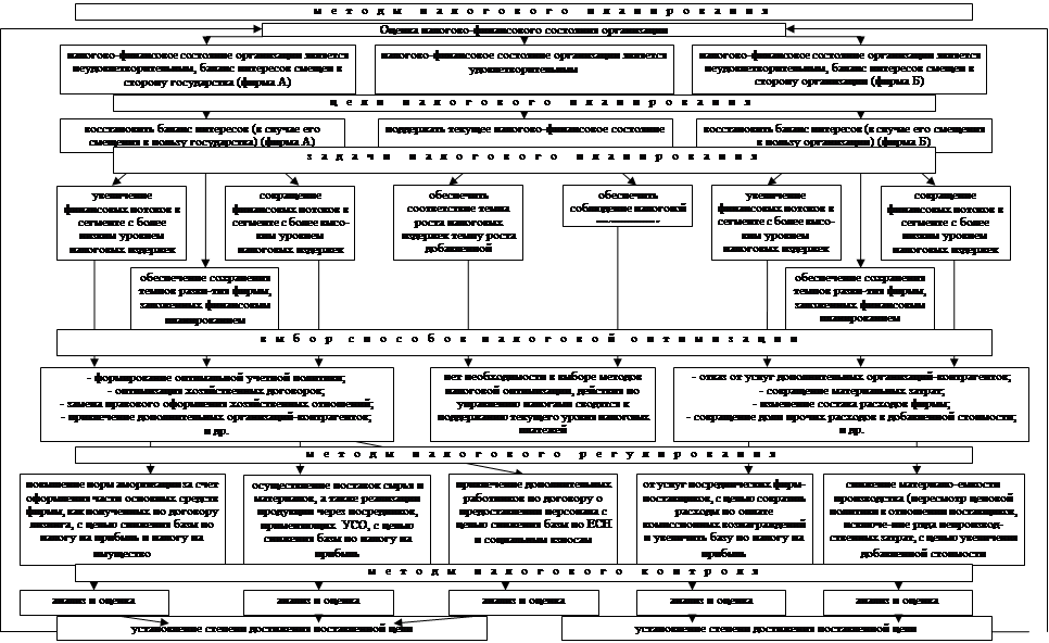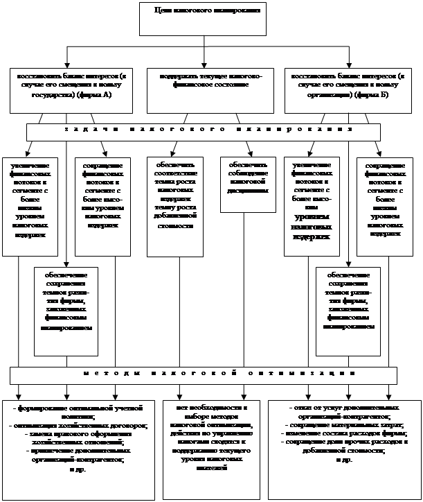 Рис.4. Соответствие методов налоговой оптимизации целям и задачам налогового планирования.