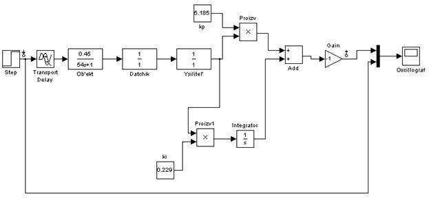 | Модель замкнутой системы управления непрерывным технологическим объектом