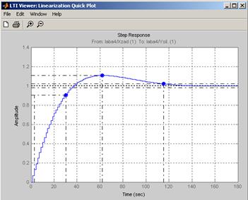 | Переходная характеристика, полученная с помощью модуля LTI-Viewer