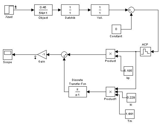 Были получены характеристики для непрерывной системы, системы с чистым запаздыванием и цифровой системы управления. Получены оптимальные коэффициенты настройки ПИ-регулятора: k
