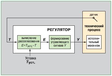 Рис. 5.1.1. Модель замкнутой системы управления непрерывным технологическим объектом