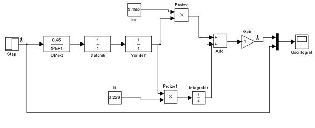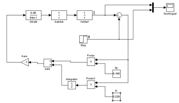 На рис. 5.2.1. представлена модель разомкнутой непрерывной системы управления технологическим объектом.