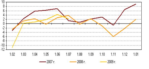 Рис. 3 Темпы прироста денежного агрегата М 2 (месяц к предыдущему месяцу, %).