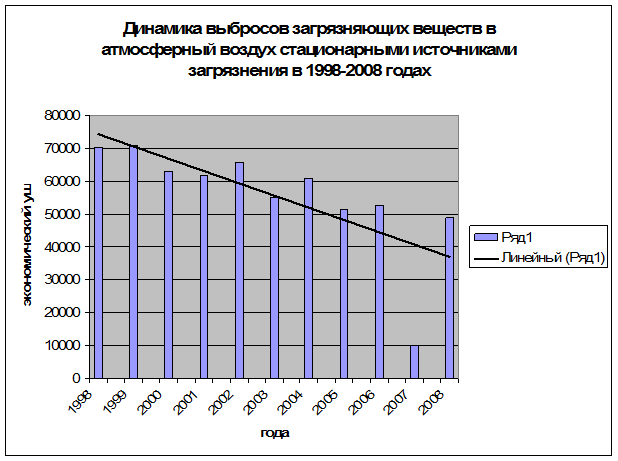 В целом идет уменьшение загрязнения атмосферного воздуха стационарными источниками с 1998-2008 гг.