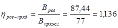 Коэффициент координации между поточной линией и ровничной машиной.