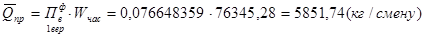 Сумма равна (кг/смену).